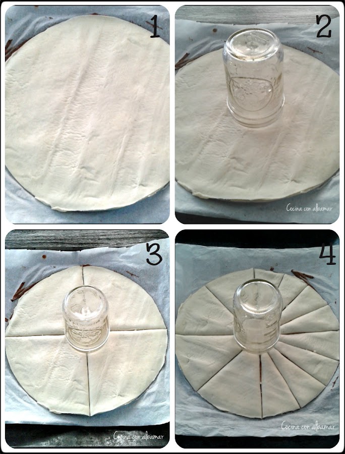 - Cortad el hojaldre en cuatro partes como se ve en la foto. (FOTO 3)