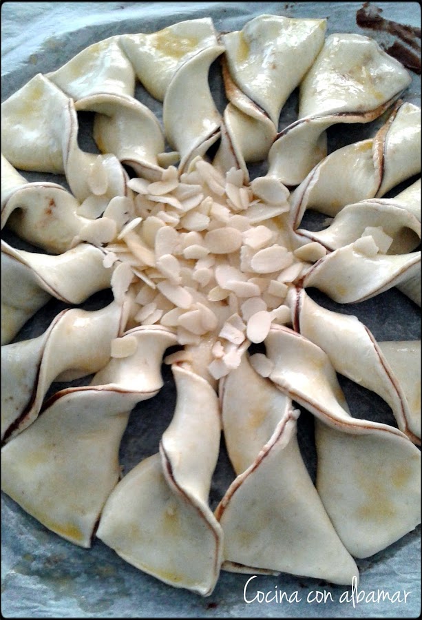 - En el centro de la rosca no lleva nada, pero yo le puse las almendras laminadas porque le dan un buen toque de gusto al hojaldre.