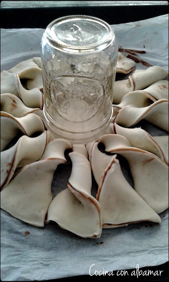 - Ahora retirad el vaso y pintad bien todo el hojaldre con huevo batido.