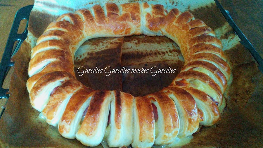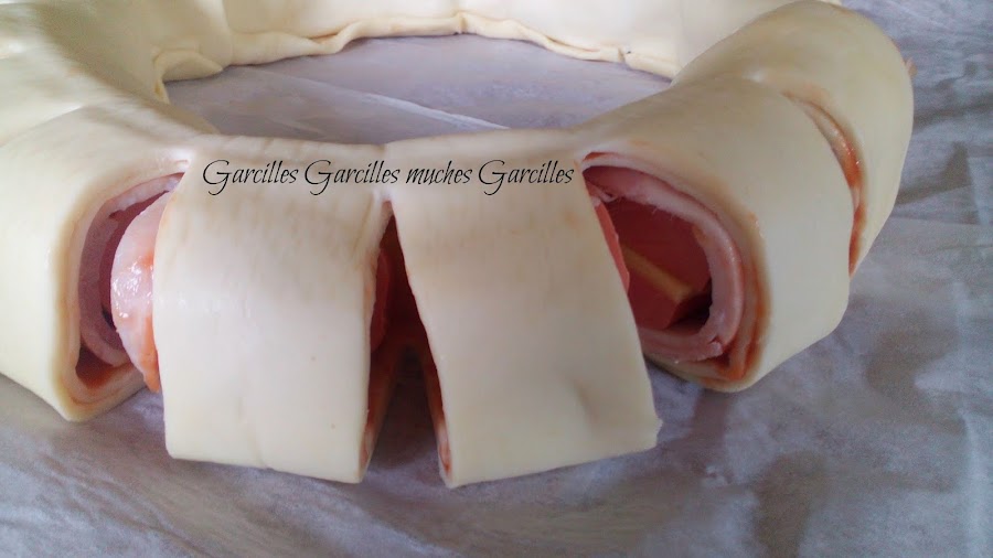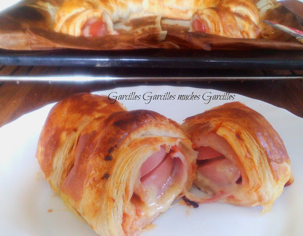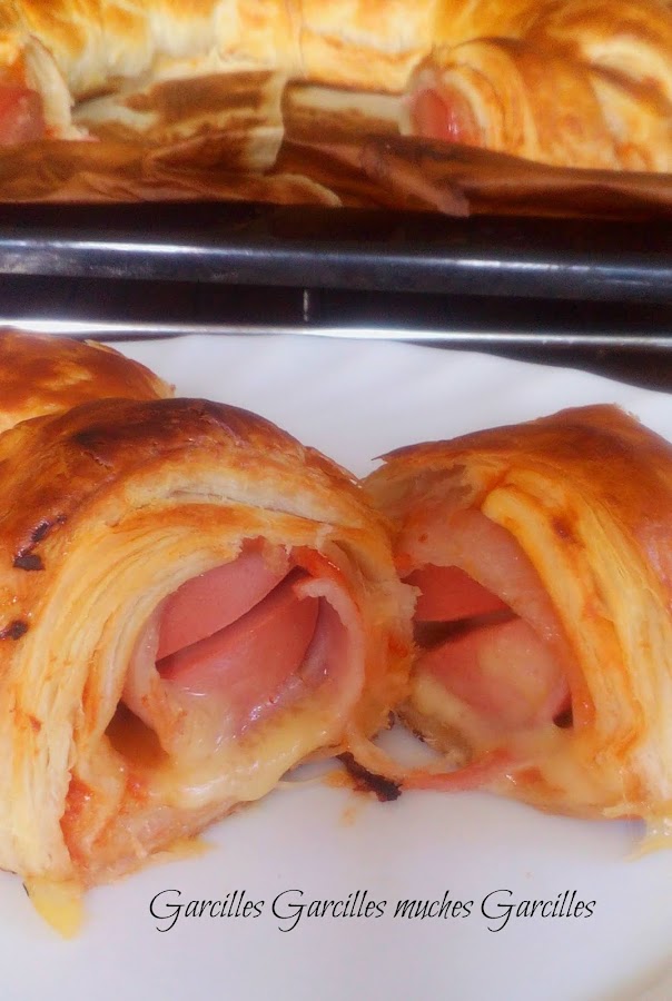 Estaba montando los canutillos cuando de pronto me acordé de que habia visto una rosca con no se qué relleno y que podia probar a hacerla con las salchichas....