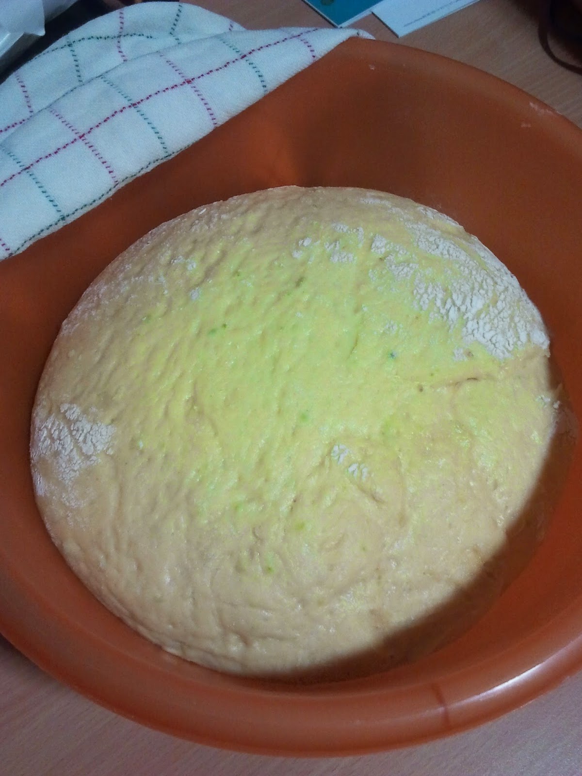 Una vez amasado dejamos reposar la masa en forma de bola en un cuenco cubierto con un paño húmedo, durante aproximadamente una hora. El tiempo de reposo varío en función de la humedad y la temperatura del ambiente, pero para que tengáis una referencia, la bola de masa tiene que doblar su tamaño.