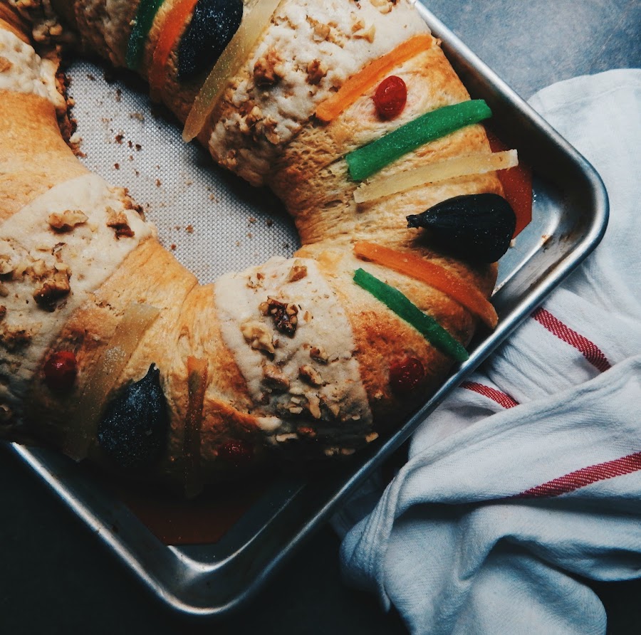 Toda la rosca es muy deliciosa, pero mis partes favoritas fueron las que tenían higos y las de cobertura con nueces. Por eso al menos mi primer rebanada de rosca fue con higo y cobertura.