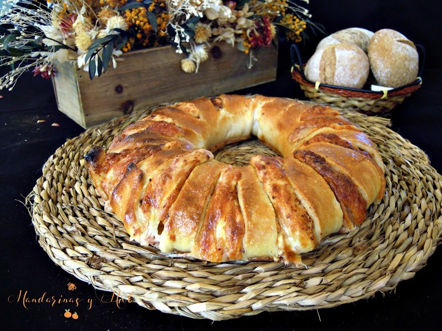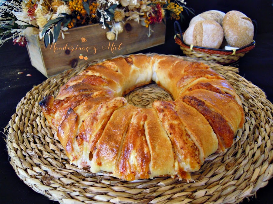 Esta vez, raro en mi, no me he ido al dulce, he ido directa a buscar alguna masa. Y mirando mirando, me encontré con esta rosca rústica que me enamoró enseguida, y la verdad es que fue un acierto porque ha sido todo un éxito, nos ha encantado!!