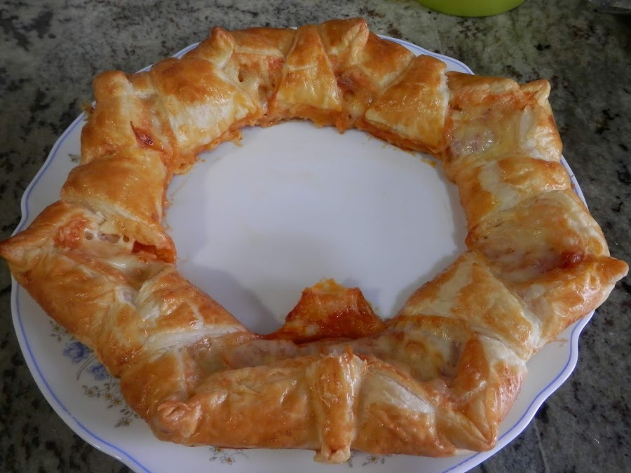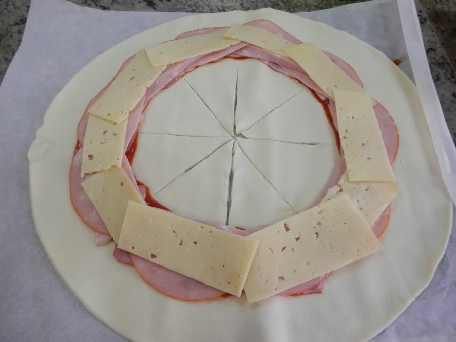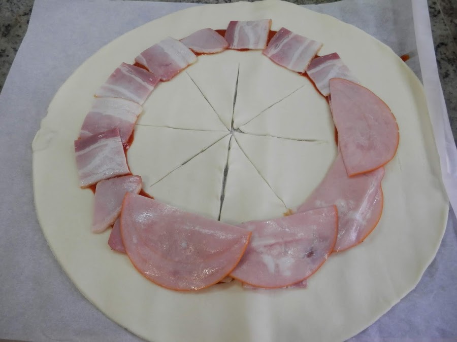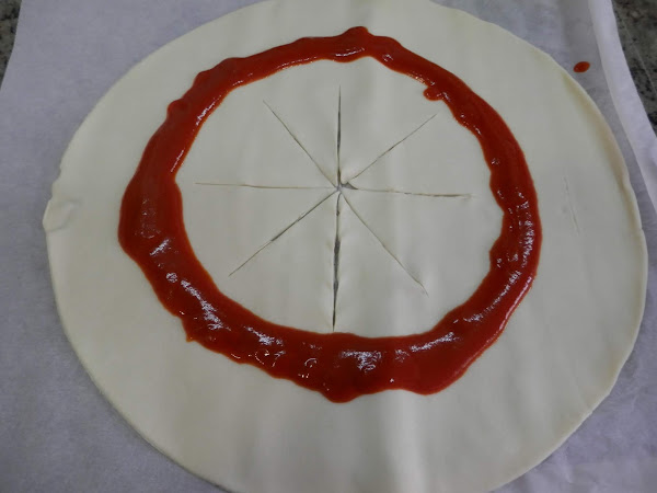 Pon la salsa de tomate haciendo un círculo que será la base de la rosca.