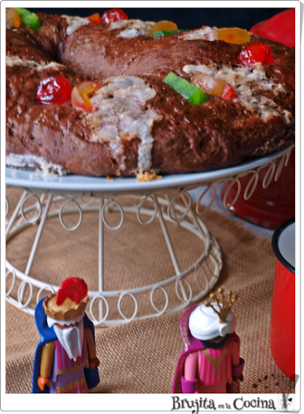 Esta vez me he decantado para recibir a los Reyes Majos por tanto con un roscón pero chocolateado, en honor a mi rey favorito desde pequeña, la receta es de Cris, porque si la masa no subía mucho, al menos sabría a chocolate y no me llevaría mucho chasco.