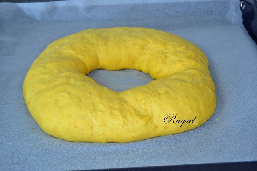 Hacemos la forma del roscón, yo hice dos, uno mas grande y otro un poco mas pequeño.