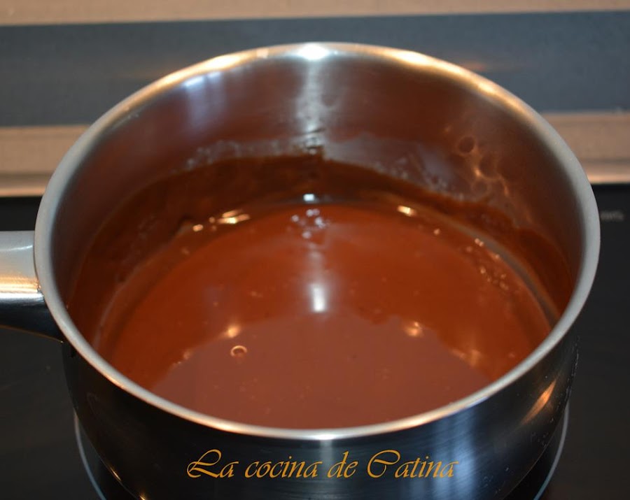 Ponemos a calentar la nata (crema de leche) en un cazo, cuando esté muy caliente sin que llegue a hervir añadimos el chocolate, apartamos el cazo del fuego, movemos lentamente para que el chocolate se derrita, añadimos la mantequilla y seguimos moviendo hasta que esté todo integrado.