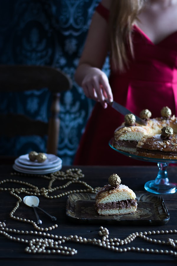 Además os voy a dar en todo el gusto a las que no os atrevéis con el roscón o no tenéis mucho tiempo, porque este Roscón de Ferrero sólo necesita un levado, nada más y sale buenísimo.