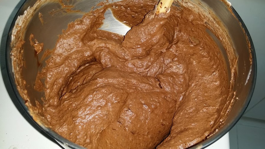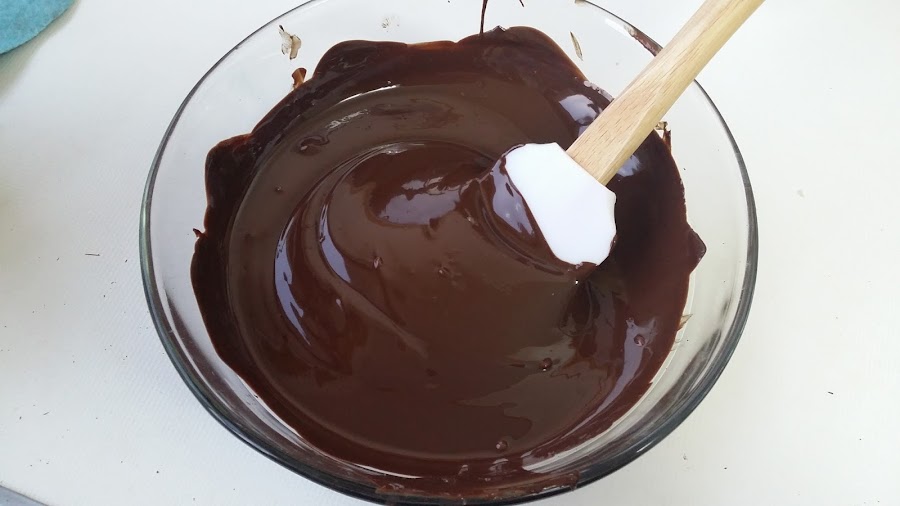 Teniendo el chocolate atemperado lo vamos mezclando con la nata (crema de leche), creando una especie de mousse.