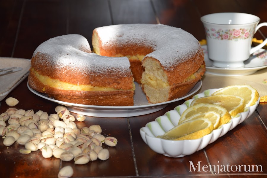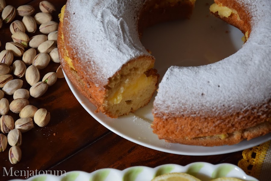 Hoy preparamos un bizcocho de limón en forma de rosco , sin leche y sin yogur con un relleno de crema de limón.
