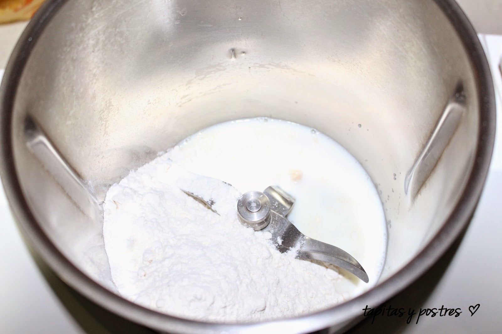 Bajamos la masa con la espátula y se vuelve amasar dentro del vaso, programando 1 minuto, vaso cerrado, velocidad espiga
