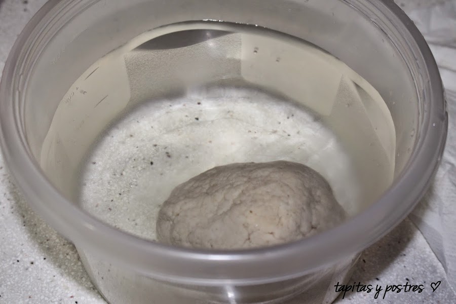 Retiramos la masa del vaso estará blanda y algo pegajosa por lo es recomendable que enharinar la superficie donde se vaya a trabajarla. Ir dándole forma de bola.