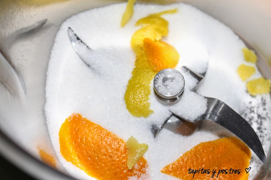 Primero pulverizamos el azúcar con la piel de la naranja y e limón.
