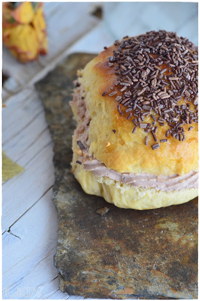Por último rellenamos con nata montada (crema de leche) y cacao