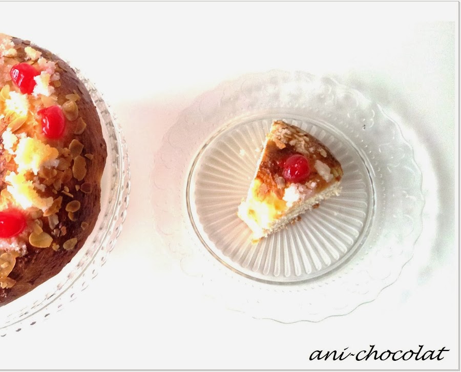 Detalle de la receta: en mi caso, bastaron con 15 minutos en el horno, bajo sus instrucciones de temperatura y tiempo (aunque en temperatura en vez de a 180ºC, lo bajé a 170ºC que mi horno calienta un montón). Como salieron dos roscones, el segundo, con el horno ya caliente, lo dejé directamente a 170ºC, 15 minutos porque si no se me quedaba. Como los hice por la noche, una vez fríos, los envolví bien en papel de film, uno de ellos al congelador, no se cómo sabrá cuando lo descongele, ya os contaré...