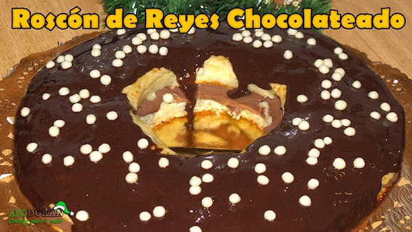 Un ROSCÓN DE REYES relleno de crema de chocolate y cubierto con chocolate...mmmmmmm!!