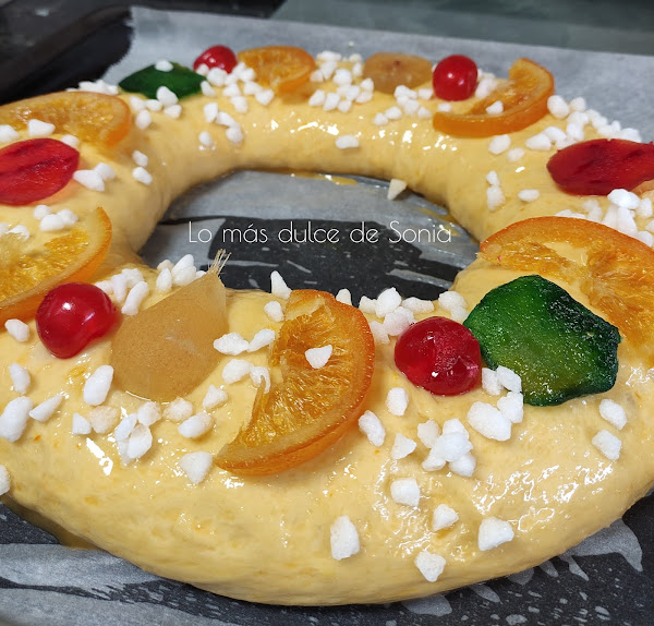 Dejamos reposar la masa de nuestro roscón de reyes en un bol ligeramente aceitado -para que no se pegue-hasta que doble su volumen, aproximadamente 2 horas. Dependerá de la temperatura que tengamos en la habitación.