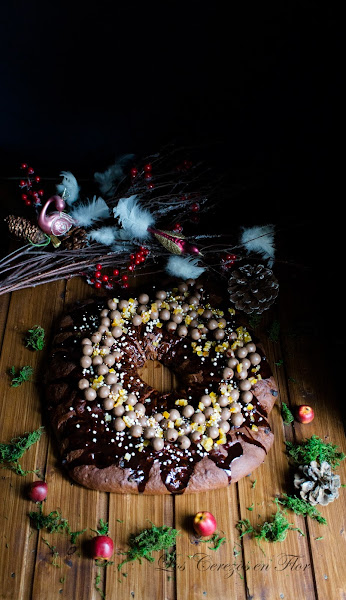Llegué a pensar que si recreaba en casa un gran ambiente navideño aportando los grande aromas de un delicioso roscón de reyes, quizá se animara el tiempo y nos regalase una bonita estampa todo nevado. Pues ni con esas! Los que se quedaron alucinados fueron los vecinos, porque el olor del roscón inundó todo mi pueblo. Desde que utilicé la receta de Ibán Yarza cómo que no me había animado a utilizar ninguna otra más, pero cómo ya la tenía en el blog me decanté por otra al chocolate por eso de variar un poco. No está nada mal, pero me sigo quedando con la original. En mi casa no han opinado lo mismo porque son chocoadictos y por lo tanto no son nada objetivos jajaja. Les metes en un plato de coliflor una picada de chocolate y se lo comen sin rechistar...no tienen remedio!! Una de las diferencias significativas de éste roscón es que no usa una masa fermentada previa, si no que mezcla todos los ingredientes y después de un ligero levado se deja reposar en la nevera toda la noche. Creo que me gusta éste método porque dejarlo todo ya amasado genera muchísimos más aromas y es mucho más rápido, porque el día en cuestión sólo debemos armarlo, decorarlo y dejarlo levar lo suficiente ( en mi caso me despisté y se pasó de levado ejem ejem ...) y lo podemos tener listo para la hora de comer. Pero lo de siempre, para gustos colores