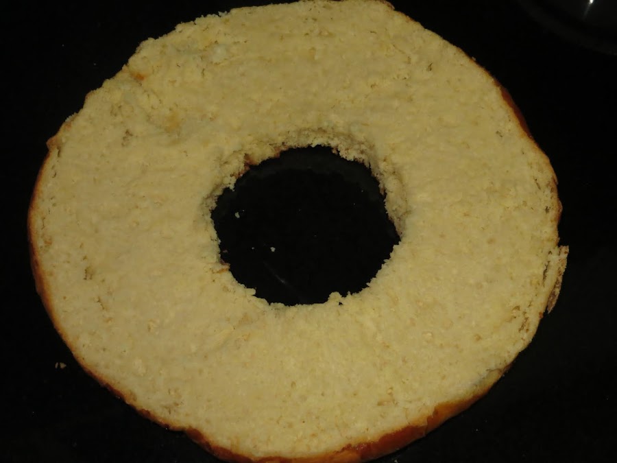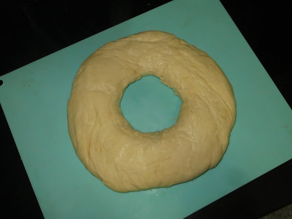 Formamos una boa y la dejamos reposar durante tres horas dentro de un bol y con un paño limpio y húmedo por encima. Transcurrido el tiempo la masa ha tenido que doblar su volumen. Vuelve a amasar de nuevo para sacarle el gas y déjalo reposar durante unos 15 minutos. Ahora forma una bola y hazle un agujero justo en el centro, intentado dejar los bodes lo más parejos posible.