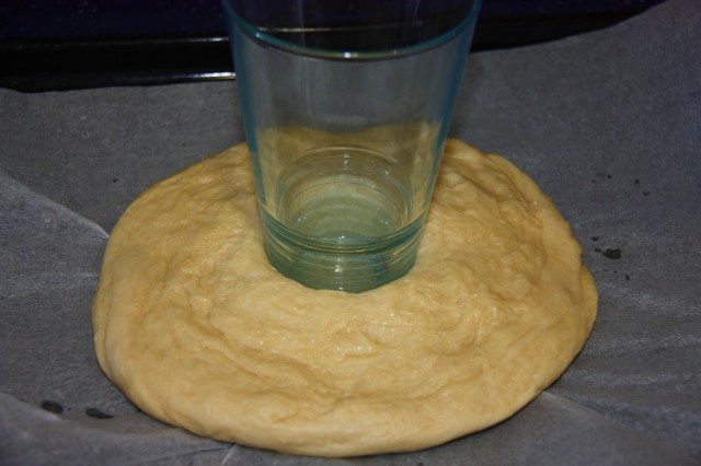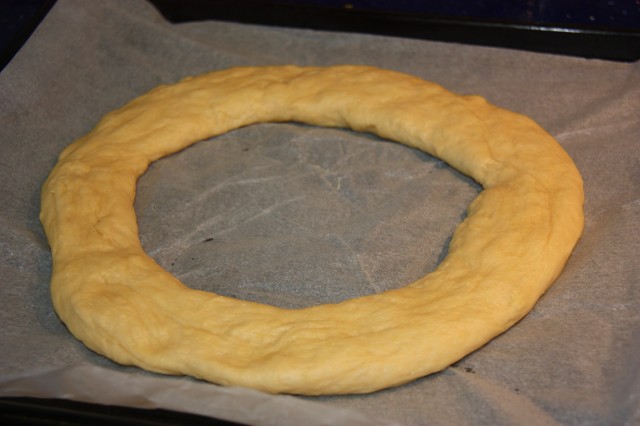 Una vez le hemos dado forma al roscón, podemos hacer uno muy grande ó dos medianos, los colocamos en una bandeja de horno con papel vegetal. Si hemos hecho monas ó bollos debemos tener en cuenta la separación entre ellas pues doblarán de nuevo su volumen.