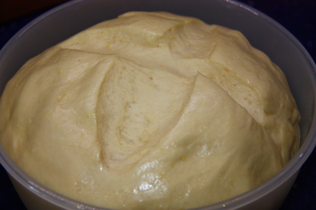 Tapamos el bol con film transparente y un paño de cocina encima del film. Puede tardar perfectamente una hora. Con nuestra masa ya levada sólo nos quedará darle forma de bollos, monas ó roscón. Es una masa muy manejable y no queda pegajosa.