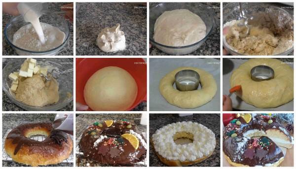 Elaboración del roscón de reyes de nata (crema de leche) con cobertura de chocolate