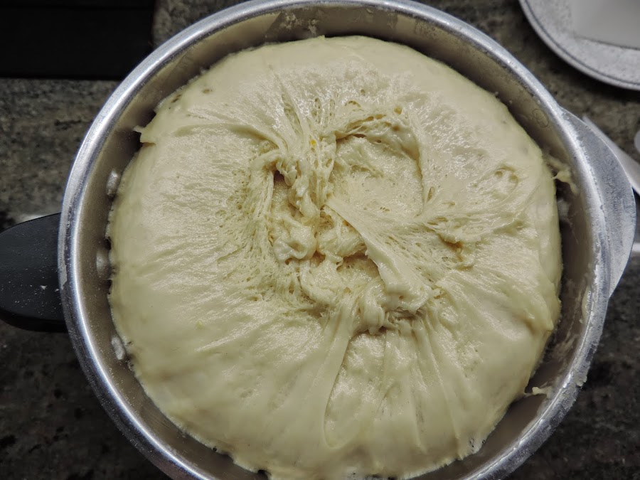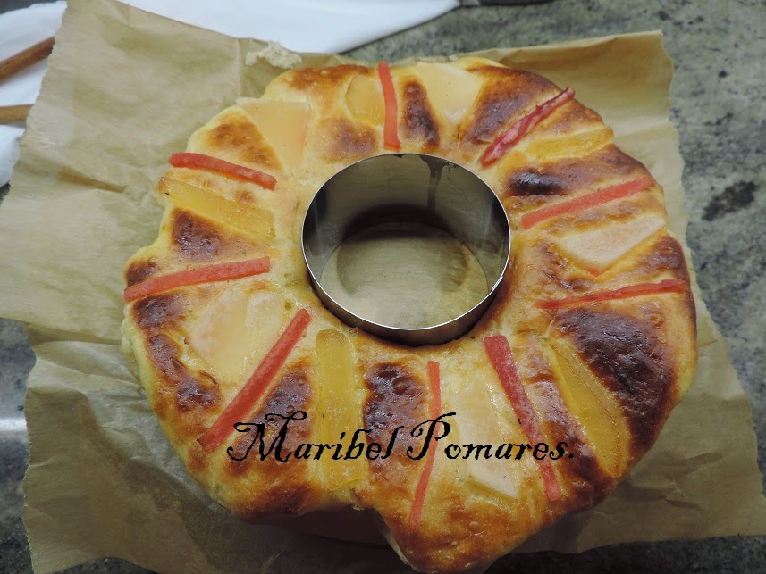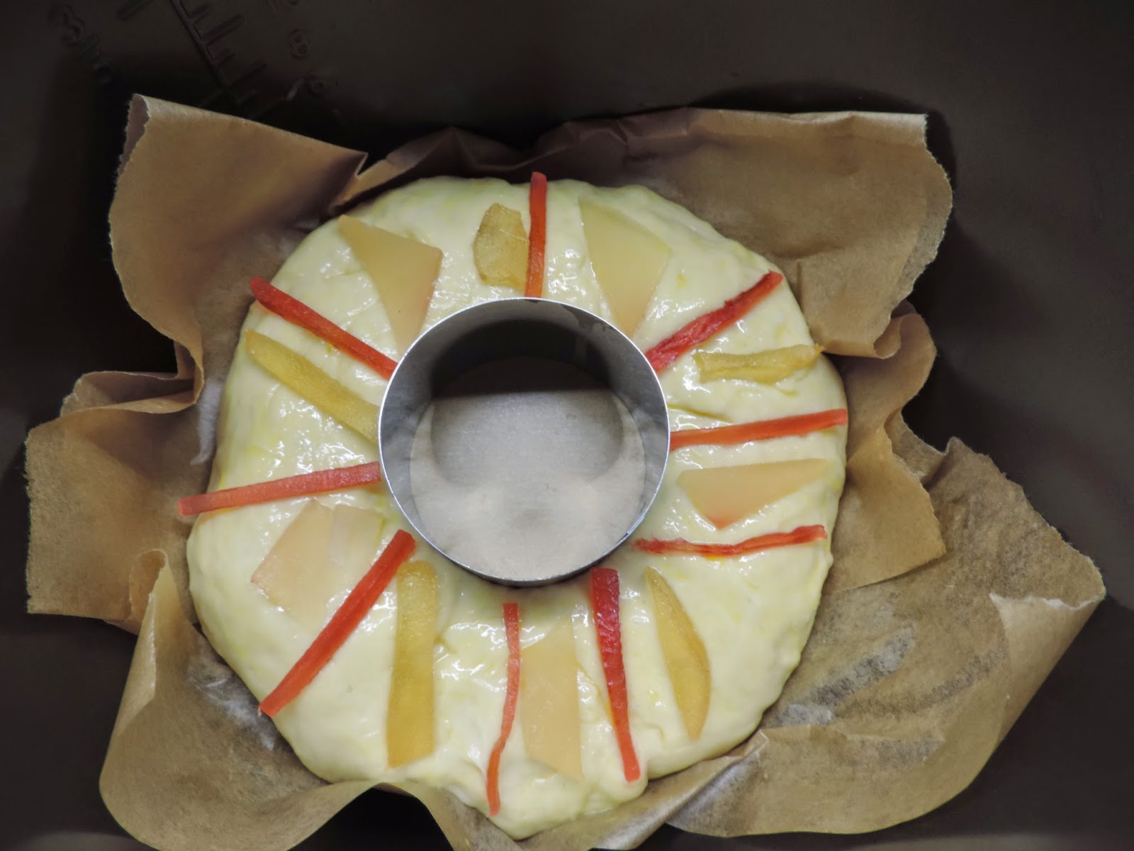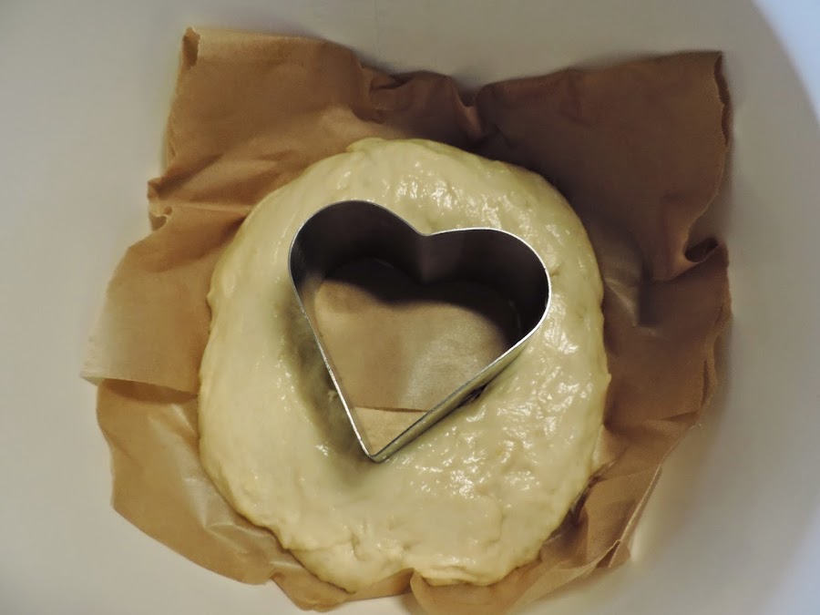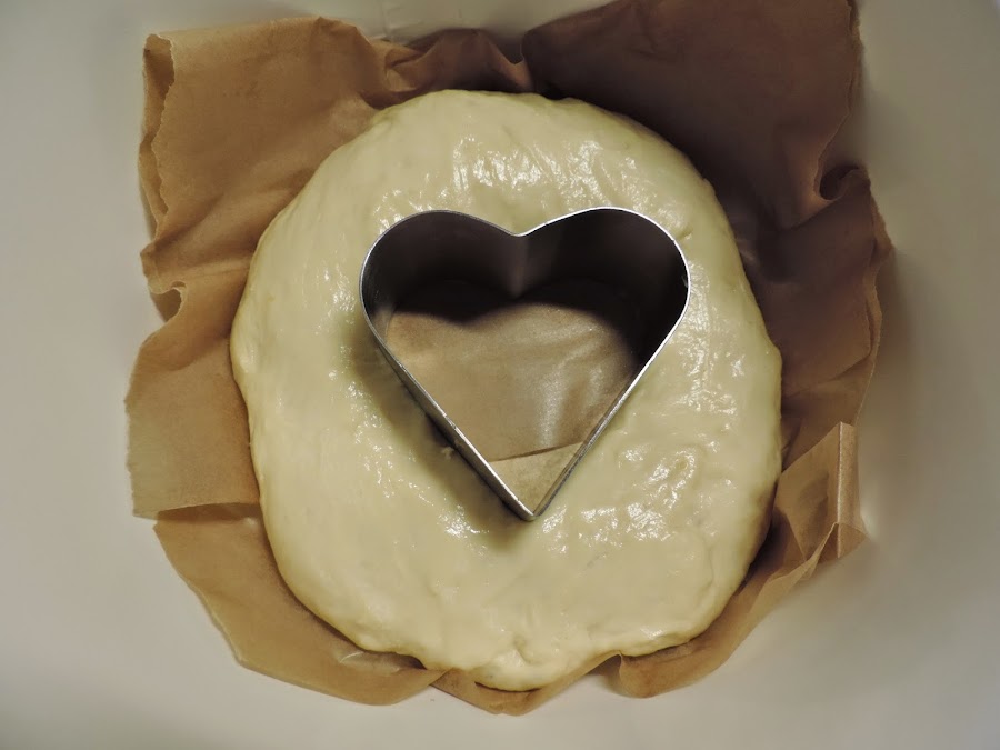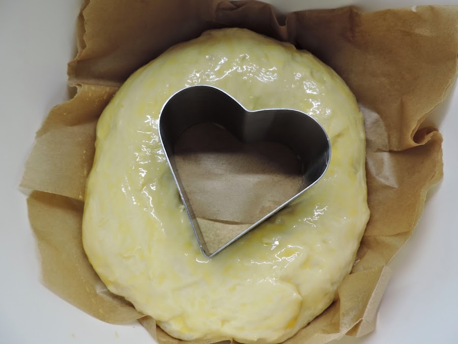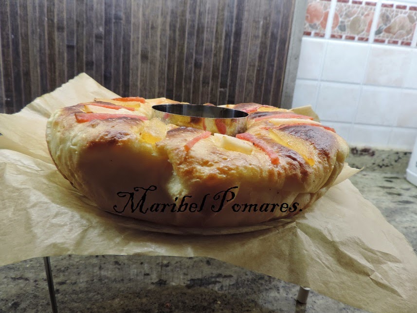 Le damos la forma, le ponemos un aro de emplatar dentro para que no se cierre en centro y la metemos dentro de la cubeta de la olla para dejarla reposar otra vez hasta que doble el volumen.