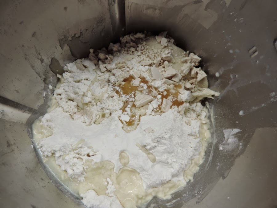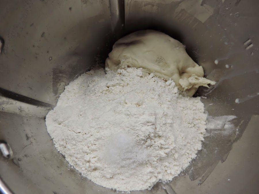 Vamos a empezar ha preparar masa, poniendo en el vaso del thermomix, la masa madre, harina.