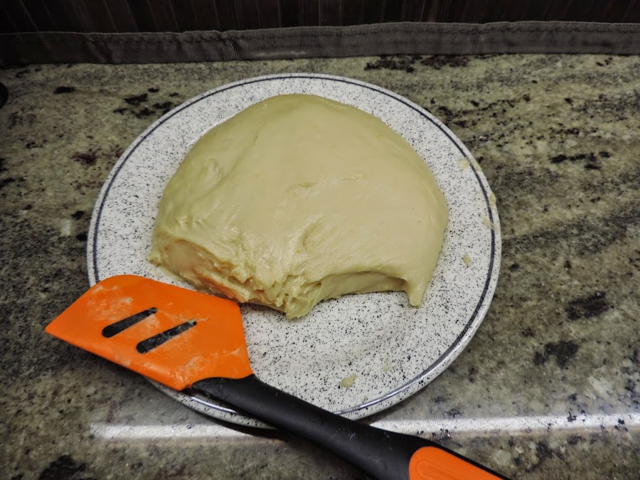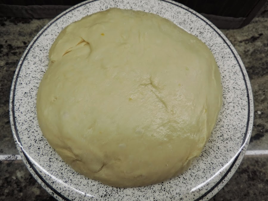 Dejamos reposar la masa hasta que doble el volumen, depende de la temperatura de la cocina, esta ha estado unas 3 horas.