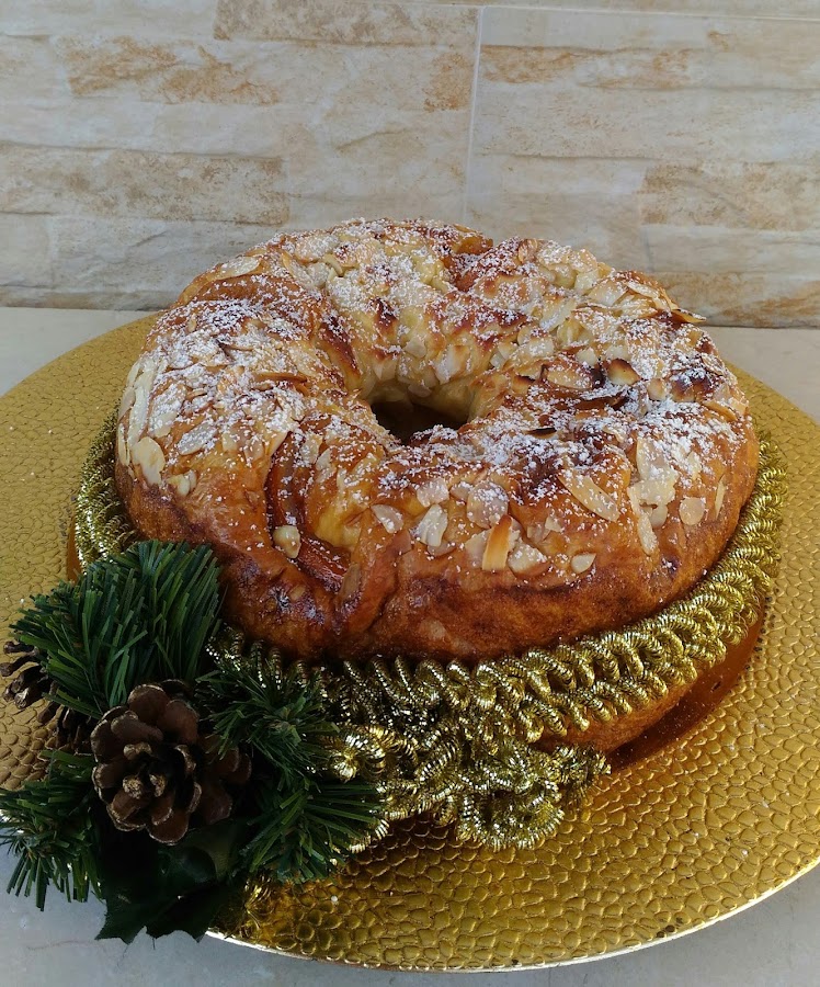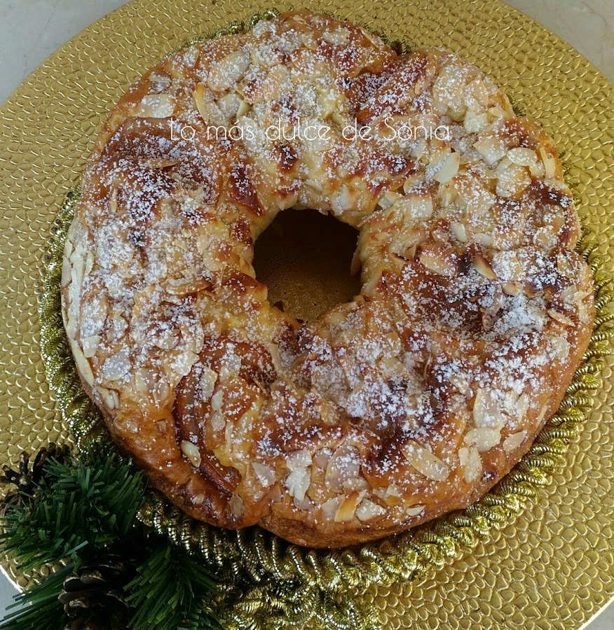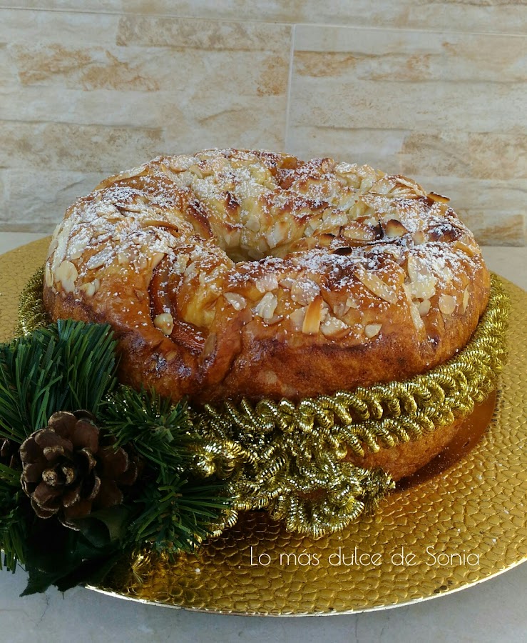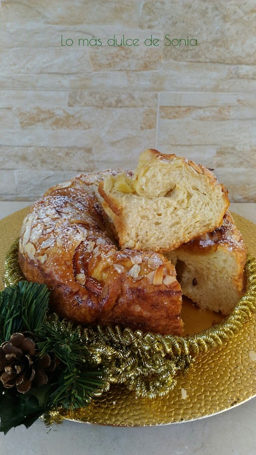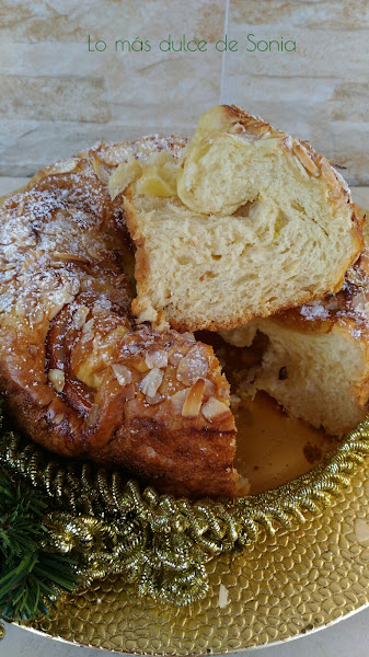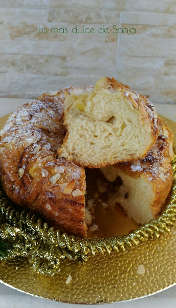 Cuando este listo, pincelamos con huevo batido, adornamos y elegimos menú pastel, 160° 15min. Después bajamos a 130° y otros 15 min. Cuando finalice comprobamos con un palillo que salga limpio y digamos unos minutos con el cabezal de horno a 175°.