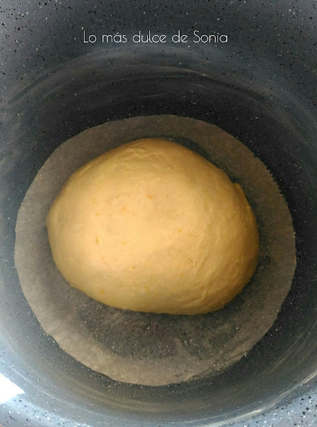Vertemos la masa en un recipiente dos o tres veces mayor que el volumen de la masa. La cubrimos con filme y dejamos que doble su volumen en un lugar cálido.