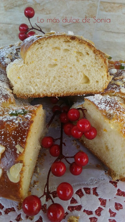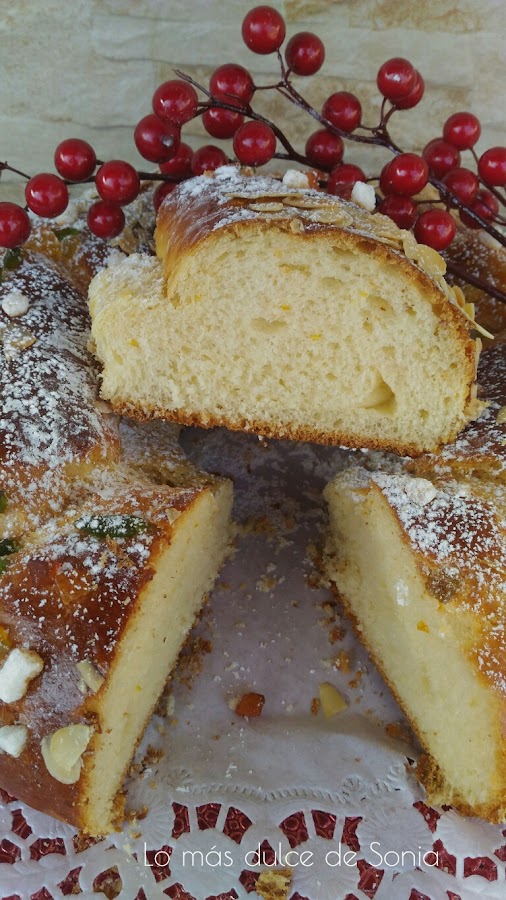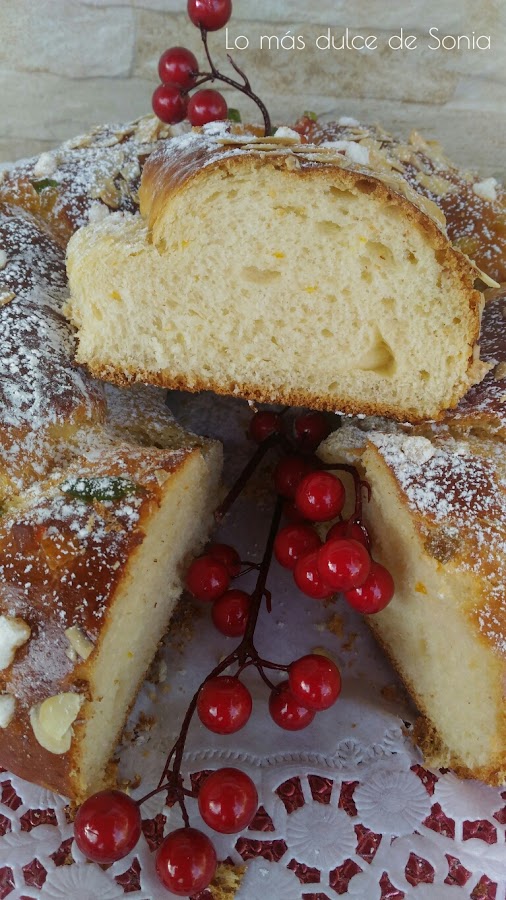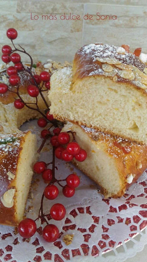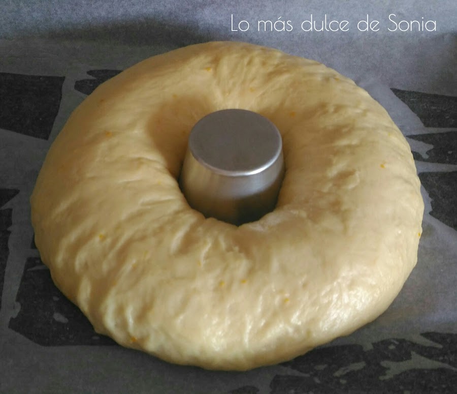 Precalentamos el horno a 190°. Horneamos el roscón unos 20 min. a la misma temperatura. Vigilando que cada horno es diferente.