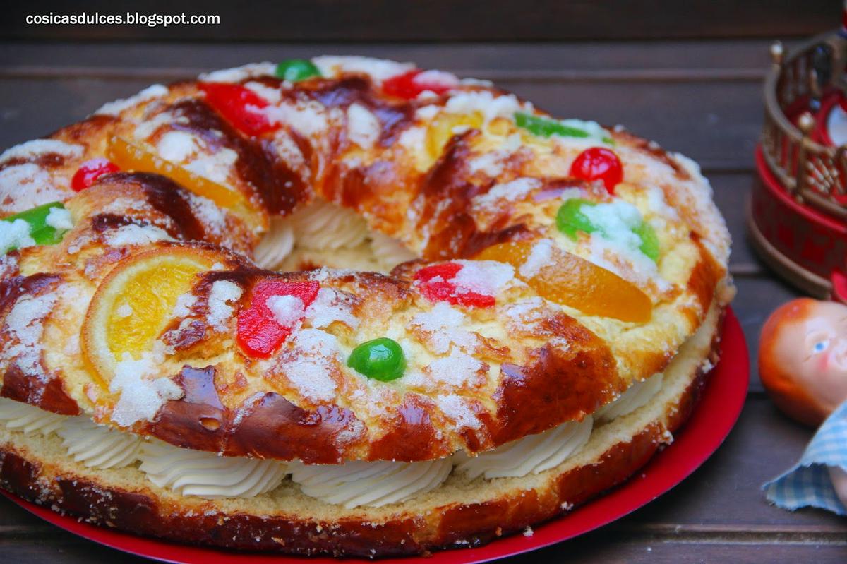 Horneamos a 200º durante 10 minutos. Luego bajamos el horno a 180º y horneamos 15 minutos más. Una vez que el roscón esté frio lo cortamos por la mitad y lo rellenamos a nuestro gusto. En mi caso con nata montada (crema de leche) y queso mascarpone.