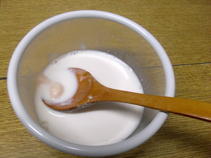 Para preparar la masa madre: Coger un bol, añadir la leche tibia y desmenuzar la levadura con una cucharadita de azúcar, remover.
