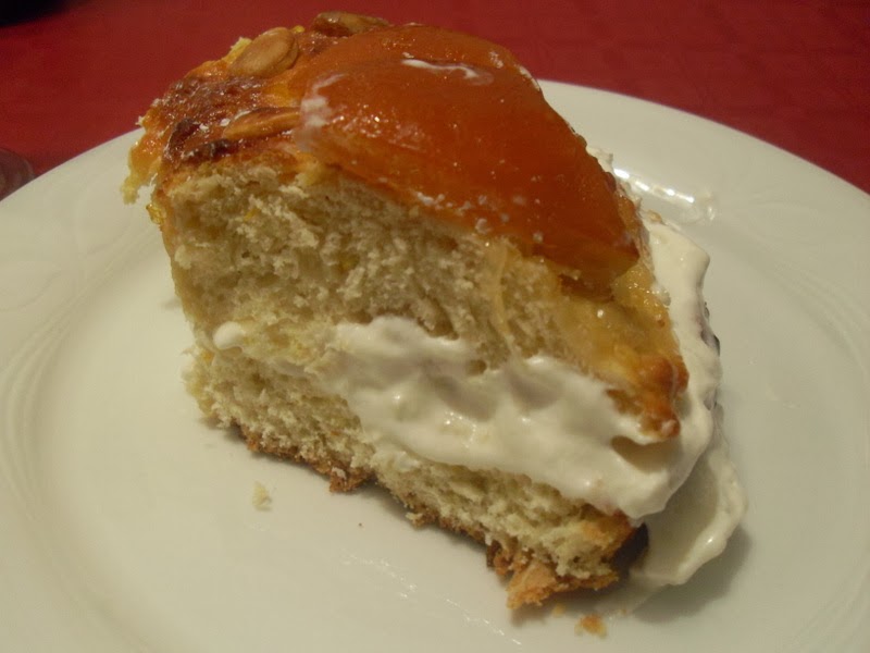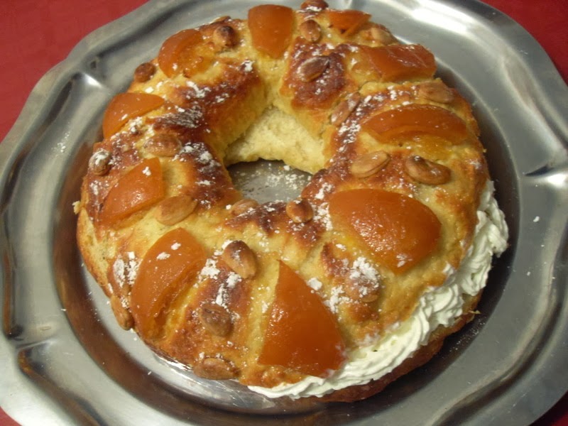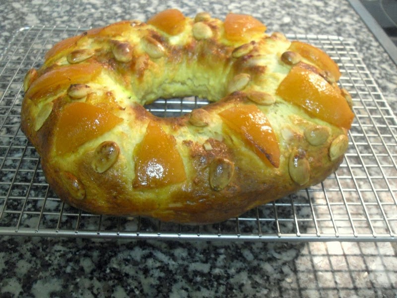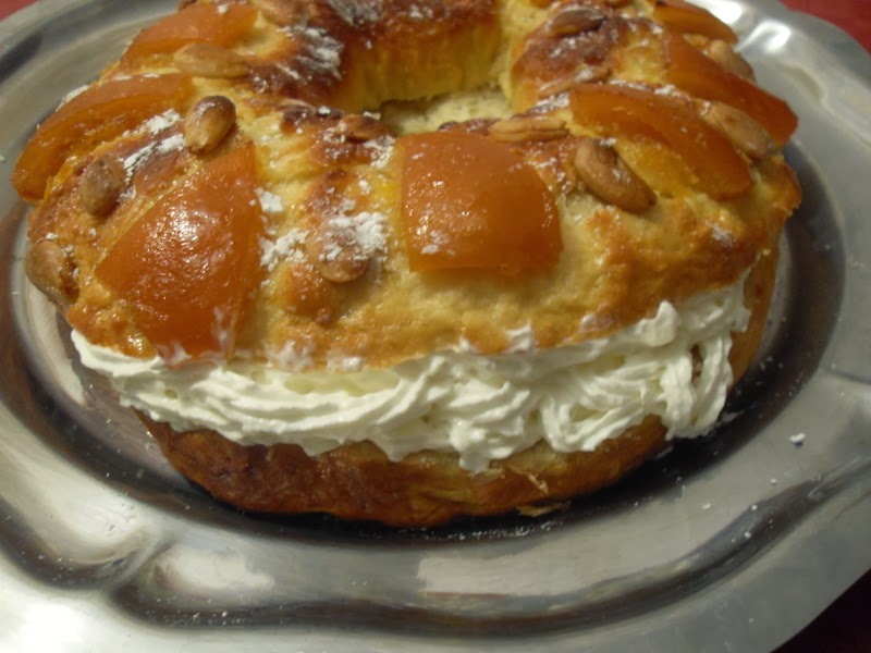 3 ª Parte de horno: Precalentar el horno a 200º, bajar la temperatura a 180º, colocar la bandeja con el roscón y hornear durante 15 minutos aproximadamente hasta que este dorado. Comprobar pinchando si ya esta cocido.