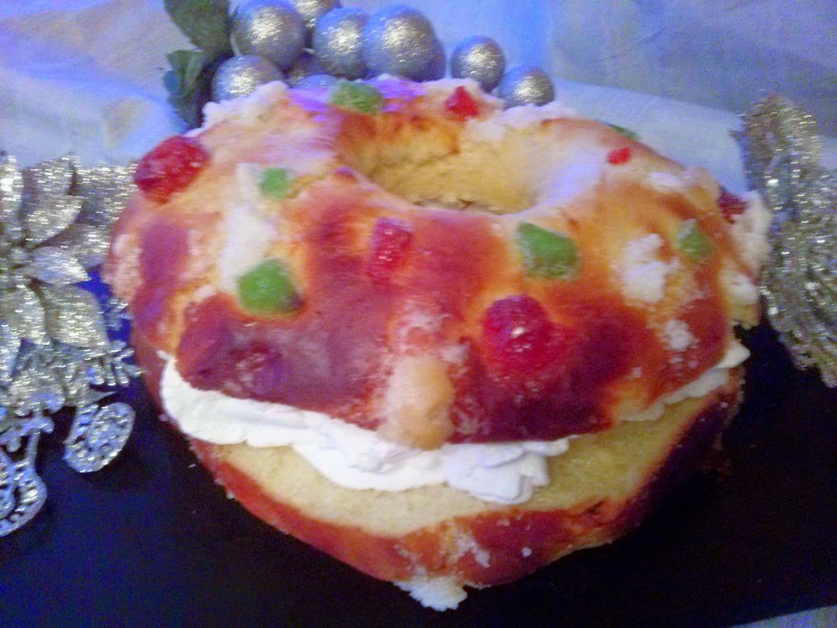 Una vez frío el Roscón ábrelo por la mitad y rellena con la nata (crema de leche).