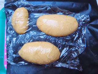 Pasado este tiempo, sacamos la masa de la nevera, y formamos una barra alargada con cada porción de masa.