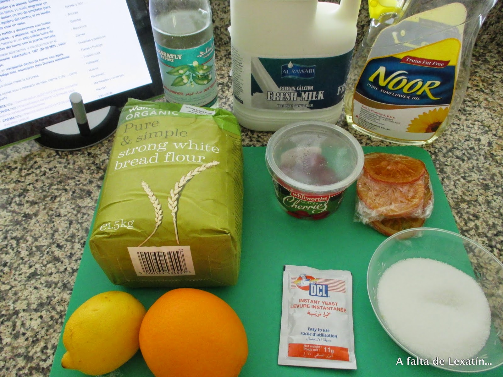 Os dejo los ingredientes para roscón gigante o mediano, dependiendo de la gente que tengais en casa, también podeis congelarlo así que hacer el que os vaya mejor. Los tiempos de levado dependeran del calorcito que haya en vuestra casa, si hace frío lo mejor es meterlo en el horno apagado y precalentado a 50º, así alejado de corrientes y templado sube mejor