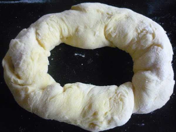 9.- Para formar el roscón introducir los dedos en el centro y abrir la masa hasta dar forma.
