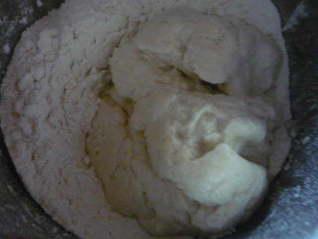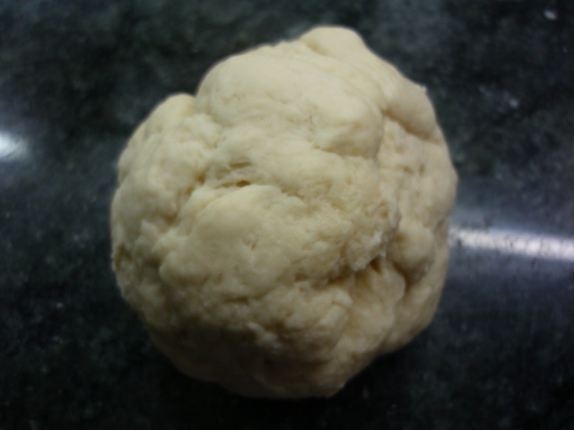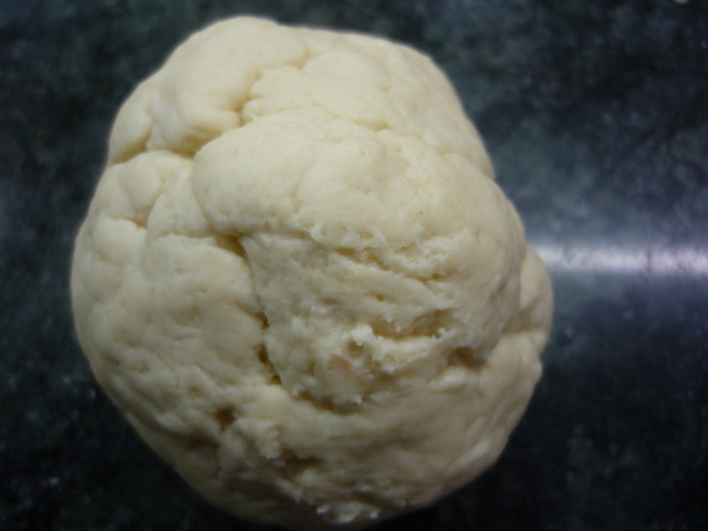 8.- Retirar la masa del vaso y ponerla sobre una superficie enharinada formando una bola y alisándola bien con las manos.