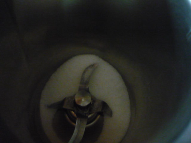1.- Con el vaso y la cuchilla muy secos pulverizar el azúcar 30 seg. velocidad progresiva 5-10.