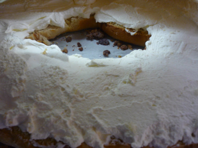 15.- Dejar enfriar, cortar por la mitad y rellenar con nata montada (crema de leche).
