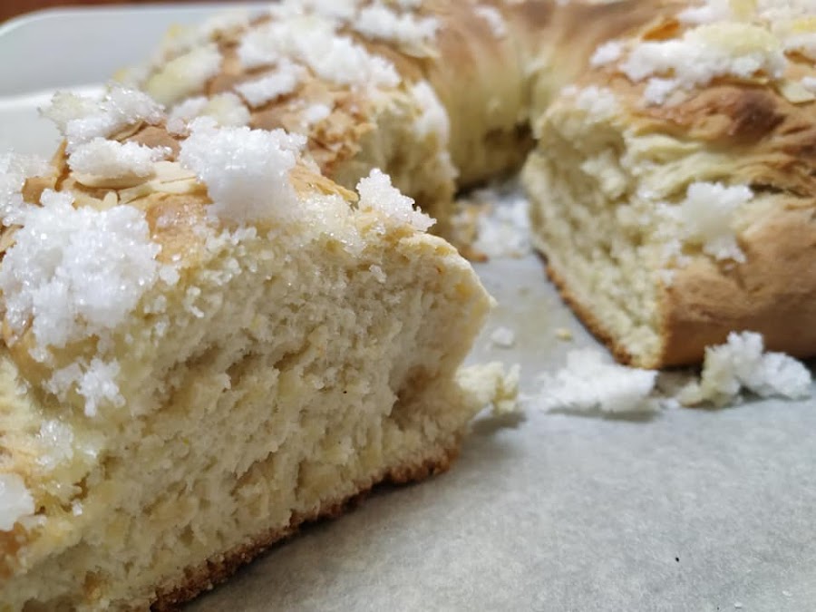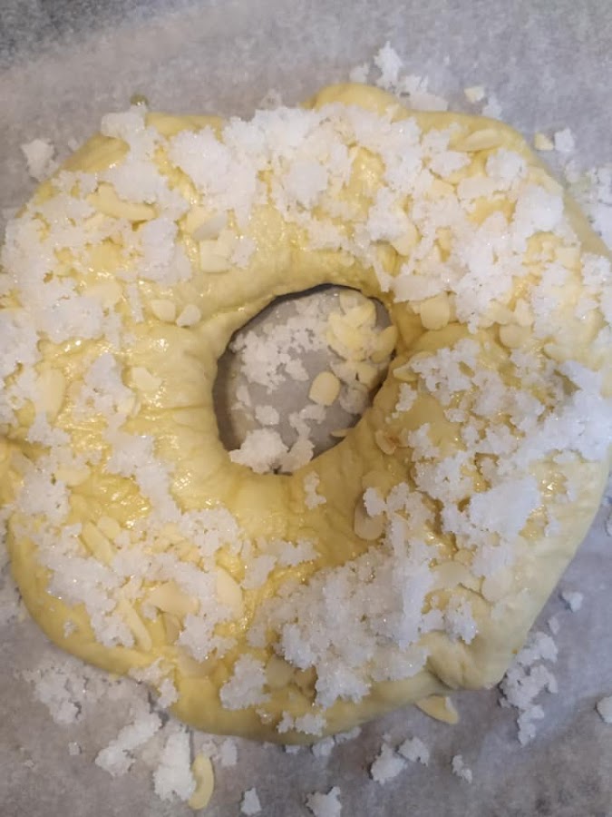 Pintamos el Roscón con aceite de oliva, cubrimos con un paño de cocina y dejamos reposar unos 30-60min.