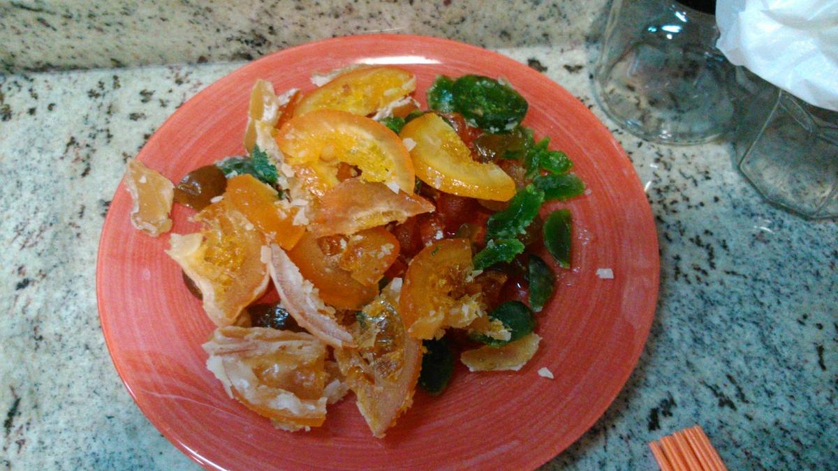 Para decorar: fruta escarchada, almendra en láminas, naranja..