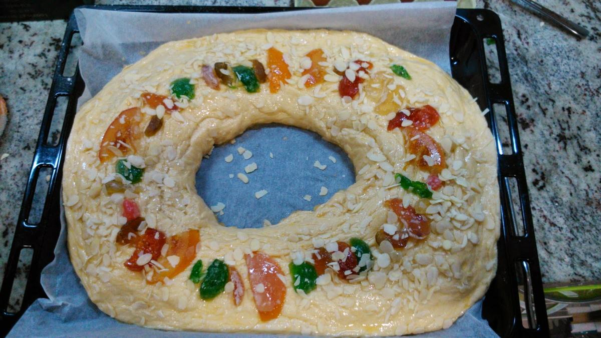Una vez tenemos los roscones decorados van al horno precalentado a 180º durante unos 20 minutos. Si es pequeño con quince minutos será suficiente.