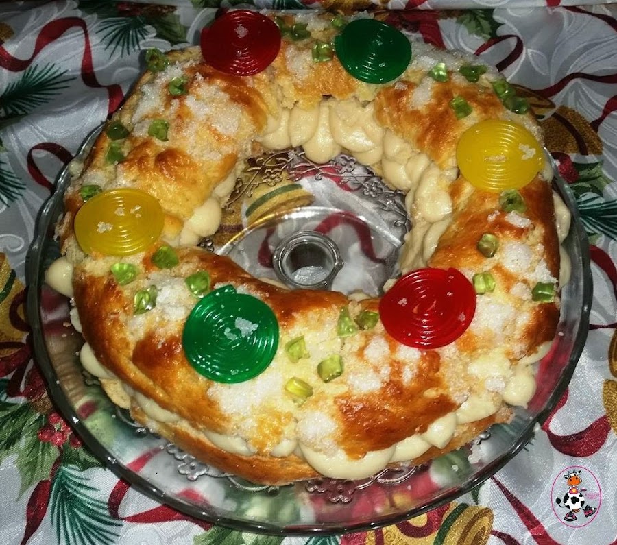 Os preguntaréis que es eso tan raro que está puesto en el roscón,no?? Pues chuchessss jjajajajajaj. :) Cómo en casa no nos gustan las frutas escarchadas pues decidí buscar un sustituto :p Bueno vamos con la recetita... ahhh este roscón no tiene ni rey ni haba...que tendrá?? Feliz día de reyes!!! ^_^