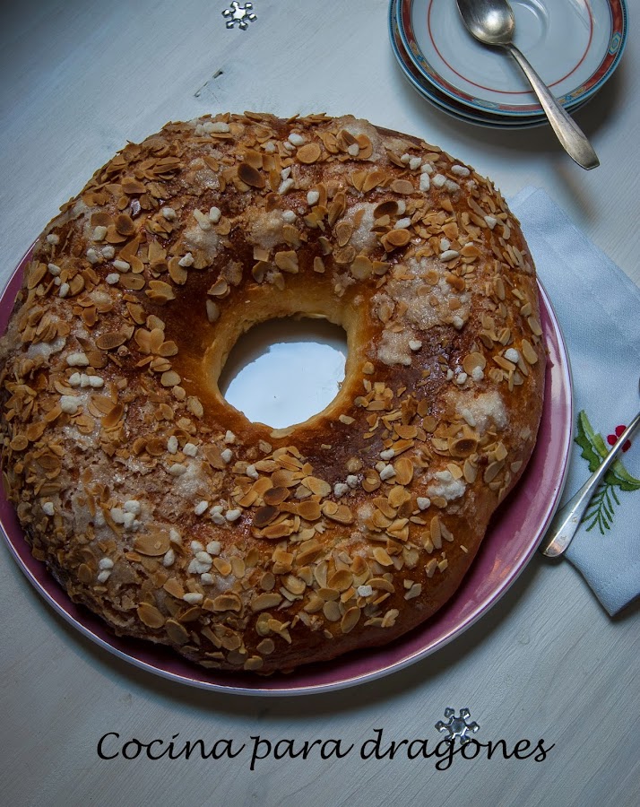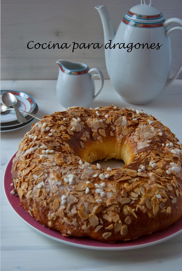3) A las 8 formamos el roscón y dejamos fermentar hasta las 12. Decoramos y horneamos.