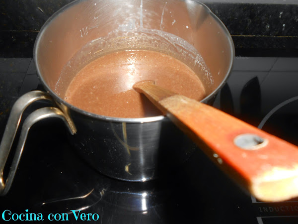 2/ En un cazo templamos la leche con el 1/2 trozo de canela en rama sin que hierva. Cuando esté apretamos un poco con una cuchara la canela en rama para que dé más sabor y lo pasamos por el colador para retirar la canela.