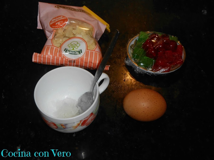 - Un poco de azúcar (6 cucharaditas pequeñas de postre) y agua fría (muy poco) en una taza para ir mezclándolo si vemos que necesita un poco más de agua se añade, ya se va viendo hasta que nos quede consistente. Esto que hemos echo se pone por encima del roscón al finalizar.