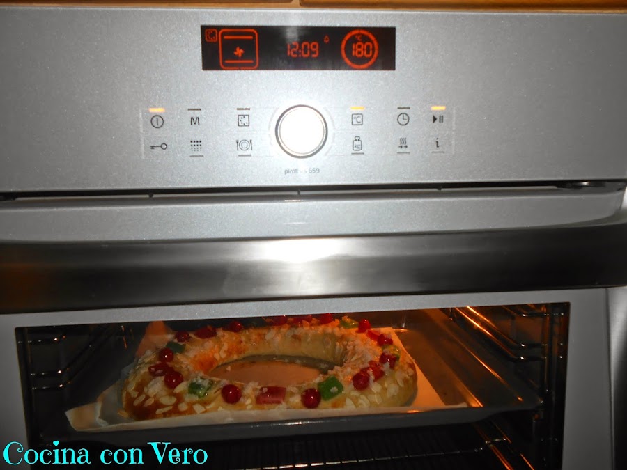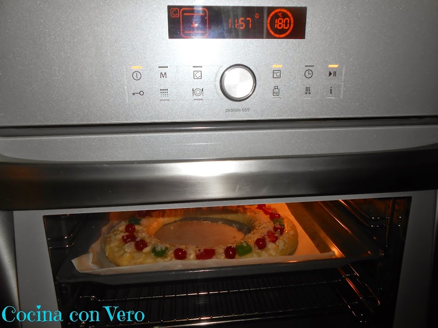 Cuando alcance la temperatura del horno, metemos el roscón por espacio de 15-20 minutos aproximadamente.